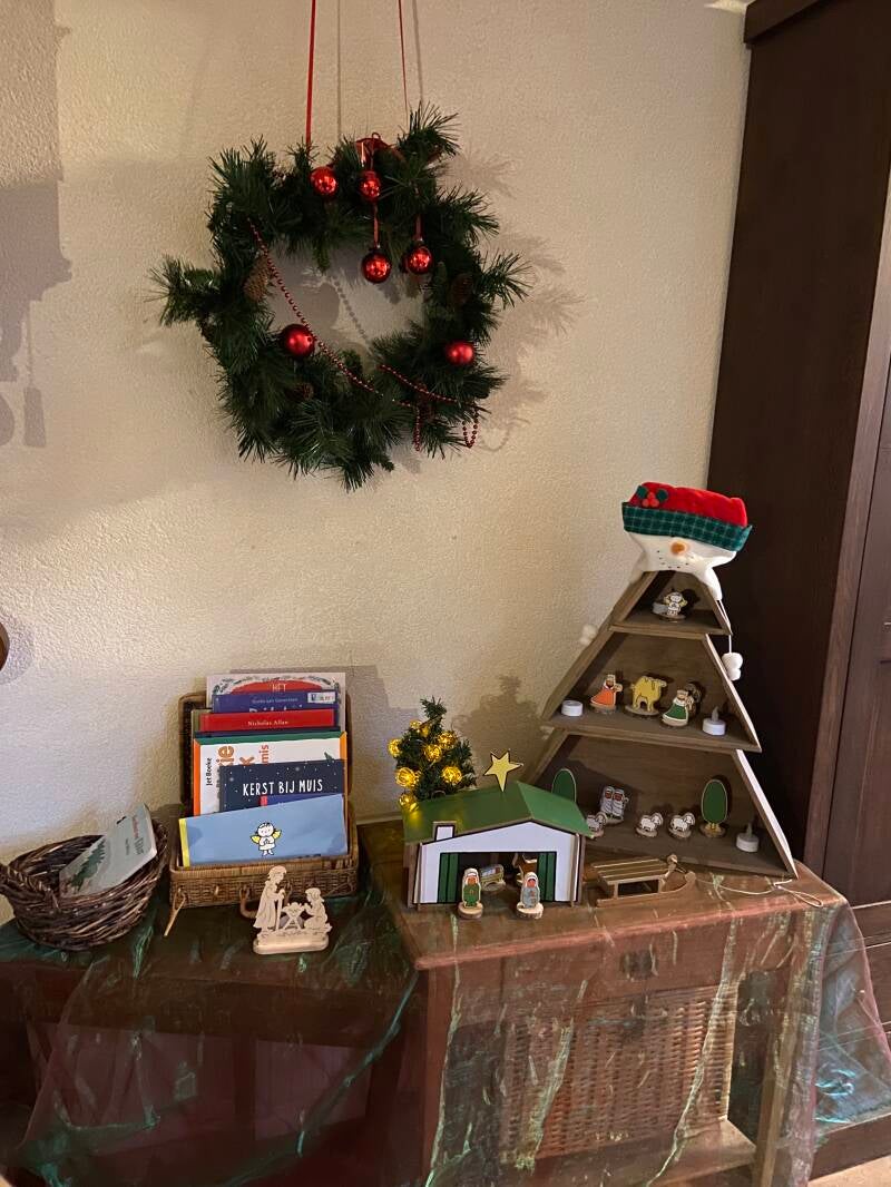 In de kamer staat een thematafel met spullen die bij het onderwerp passen.